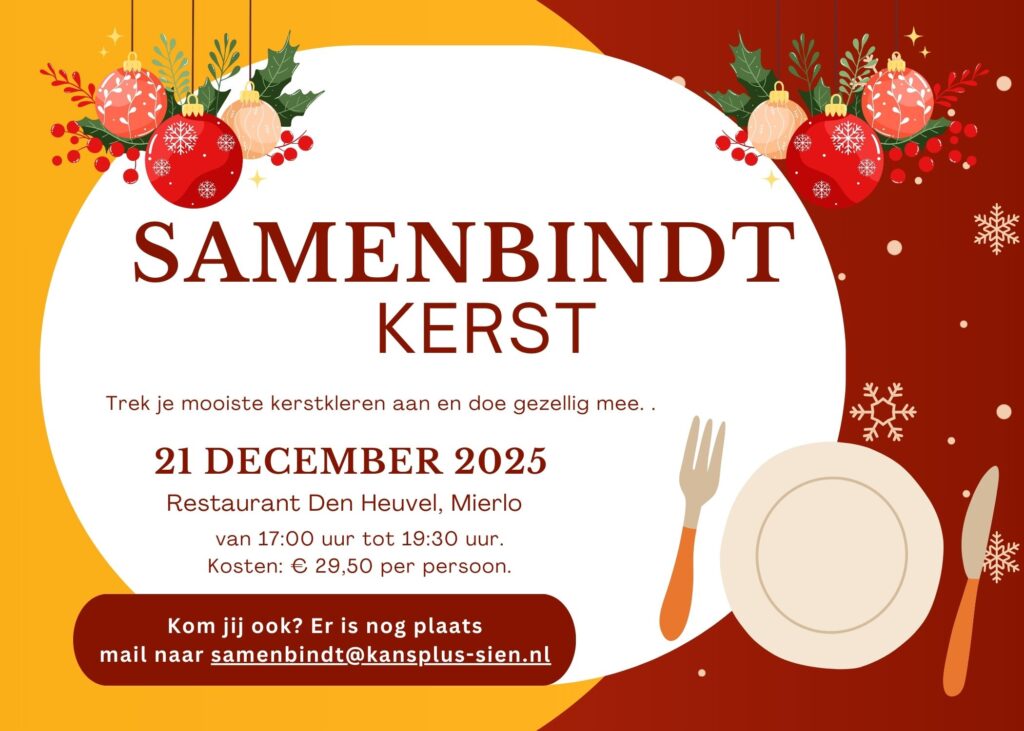 Gezellig bij elkaar komen, nieuwe mensen ontmoeten of bijkletsen met oude bekenden en intussen samen genieten van een leuke activiteit: dat is waar het om gaat bij Samenbindt. Jinny en Kristy zijn deze activiteit begonnen met samen uit eten gaan in een restaurant, maar intussen zijn er ook al wat andere gezellige activiteiten en uitstapjes geweest. Zo kun je bijvoorbeeld met Samenbindt mee naar het Slaatjesbal op 6 februari 2026. Eén groot carnavalsfeest en hoe leuk is het om dat feest samen met vrienden te beleven. Aanmelden kan nog, als je snel bent, bij Kristy van Eerden via samenbindt@kansplus-sien.nl.
